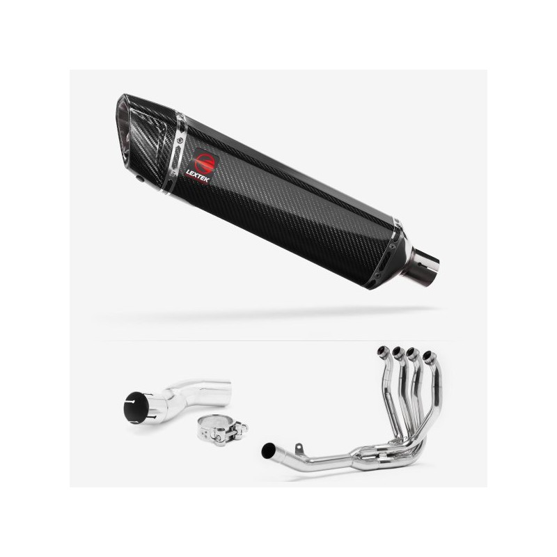 Silencieux sport carbone avec tube de connexion Lextek SP9C 300mm