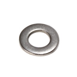 A washer is a flat, typically circular metal or plastic component used in motorcycle assemblies. It is placed between a fastener (like a bolt or nut) and the surface it is fastening to.